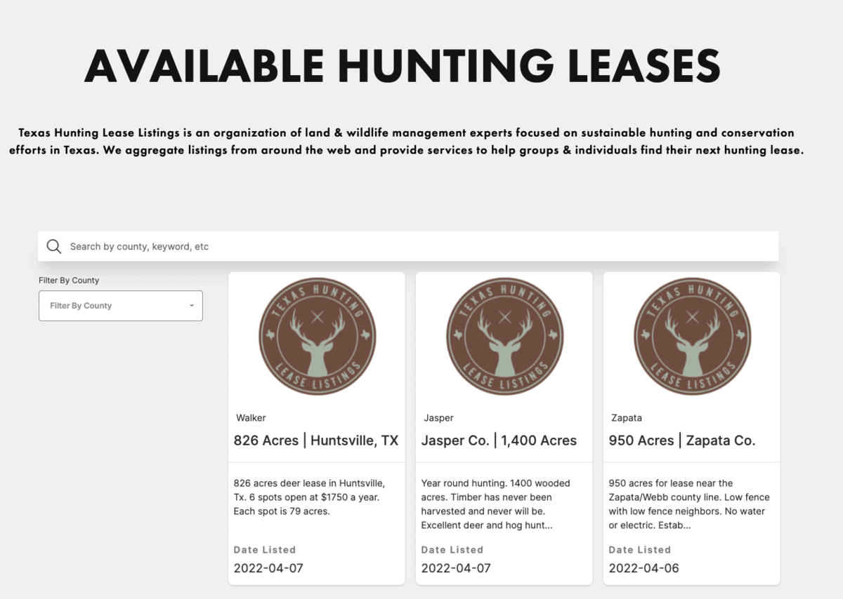 Get access to all hunting lease listings today. Currently, 59 leases are available.
